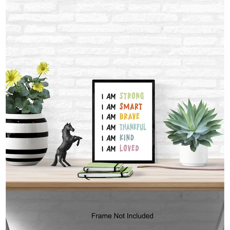 Positive Affirmations Wall Decor - Nursery Toddler Little Boys Girls Bedroom Kids Room Decor - Child Room Decor - Classroom decoration - I Am Positive Quotes Inspiration Family Wall Art UNFRAMED