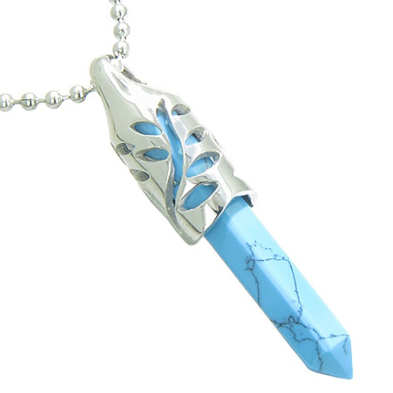 • Best Amulets Collection. Positive Energy Magic Powers Leaf Amulet Crystal Point Lucky Charm Simulated Turquoise Stainless Steel Pendant on 22” NecklacePositive Energy Leaf Amulet Crystal Point Lucky Charm Simulated Turquoise Pendant 22 Inch Necklace