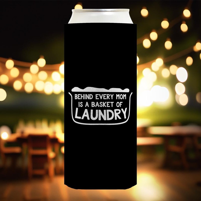 Positive Parenting Gifts For Mom Behind Every Mom Is A Basket Of Laundry 24-Pack Ultra Slim Can Drink Thermocoolers Party Pack