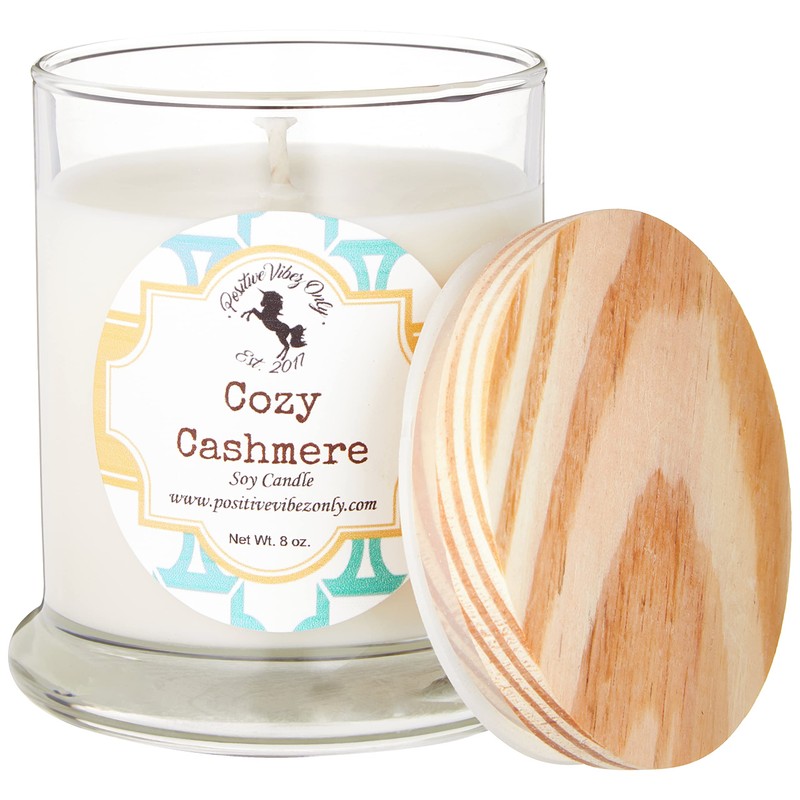 Positive Vibez Only Cozy Cashmere Scented Soy Candle, 8 Ounce Tumbler, Single Wick Candle, 40 Hours of Burn Time, Fall Candle