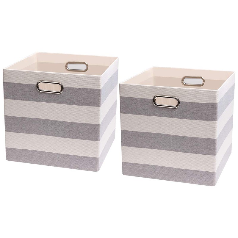 Posprica Storage Cubes,13×13 Collapsible Storage Baskets Bins Fabric Drawers - 2pcs, Grey-White Striped