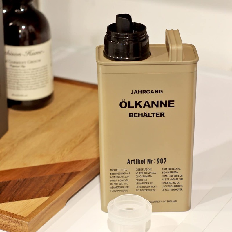 - A bottle made specifically for laundry liquid with a vintage motor oil can.