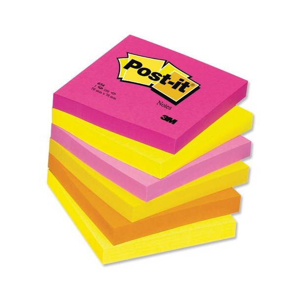 Post-it 654-TF Sticky Notes Warm Neon Rainbow (76 x 76 mm, 100 Sheets per Pad) 6 Pads Multi-Coloured