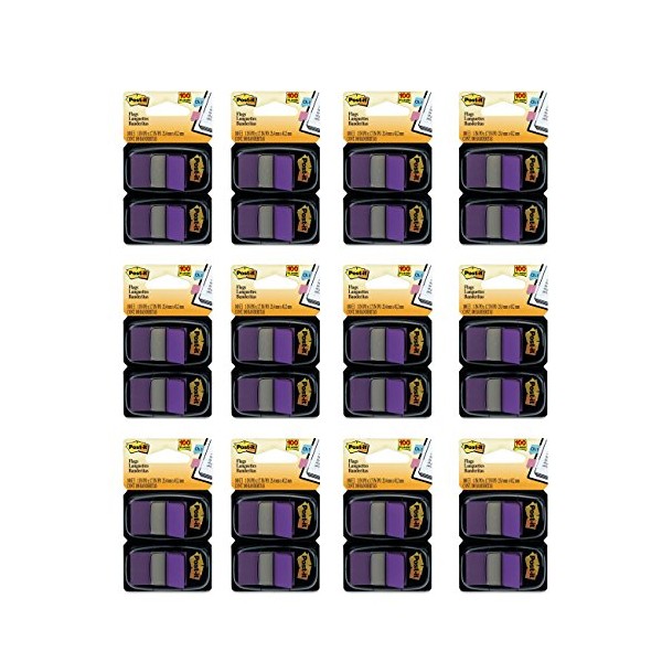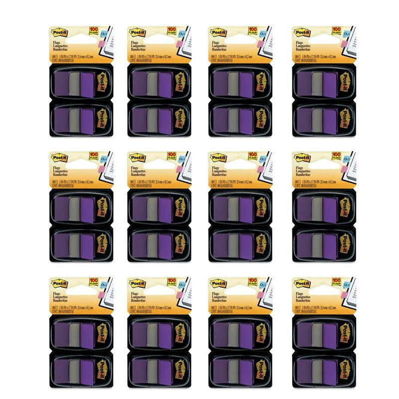 Post-it Flags, 1", Purple, 50/Dispenser, 2 Dispensers/Pack, 12 Pack (680-PU2)