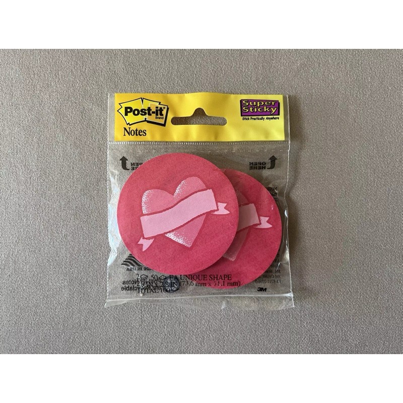 This listing is for a brand new pack of two “Pink Heart” round Super Sticky Post-It Note Pads. This pack of note pads are approximately 2.9” X 2.8” and each pad includes 50 sheets.