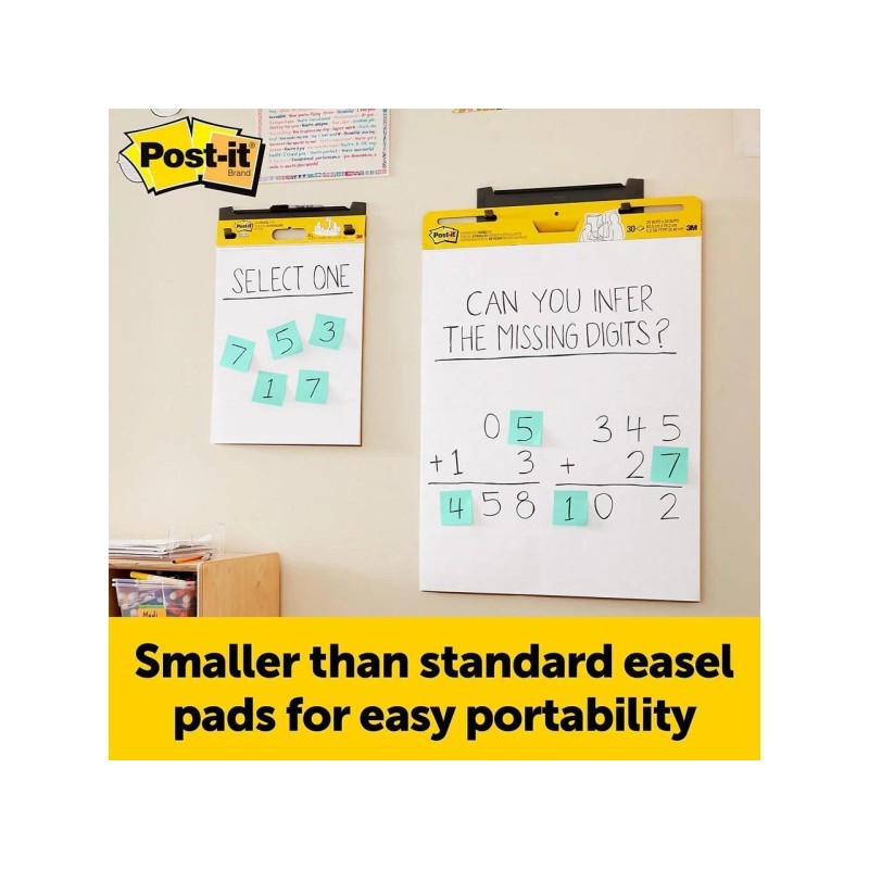 Use with Post-it Super Sticky Notes to organize ideas. STICKS SECURELY AND HOLDS UP TO 2X LONGER - Easel paper can be repositioned without surface damage. No tape or tacks needed unlike standard flip chart paper. Keep agenda and ideas where everyone can see. INK BLEED-THROUGH RESISTANT PAPER - Small white premium self-stick flip chart paper that resists marker bleed-through to keep great ideas on the page, not on what's under the page. IDEAL FOR BRAINSTORMING AND MANAGING PROJECTS - Perfect for training or teaching sessions, brainstorming sessions, planning sessions, project management and agile processes, meetings and presentations.