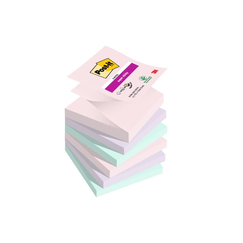 Post-it Super Sticky Z-Notes Soulful Color Collection, Pack of 6 Pads, 90 Sheets per Pad,76 mm x 76 mm, Pink, Purple, Green - Extra Sticky Notes for Note Taking, to Do Lists & Reminders