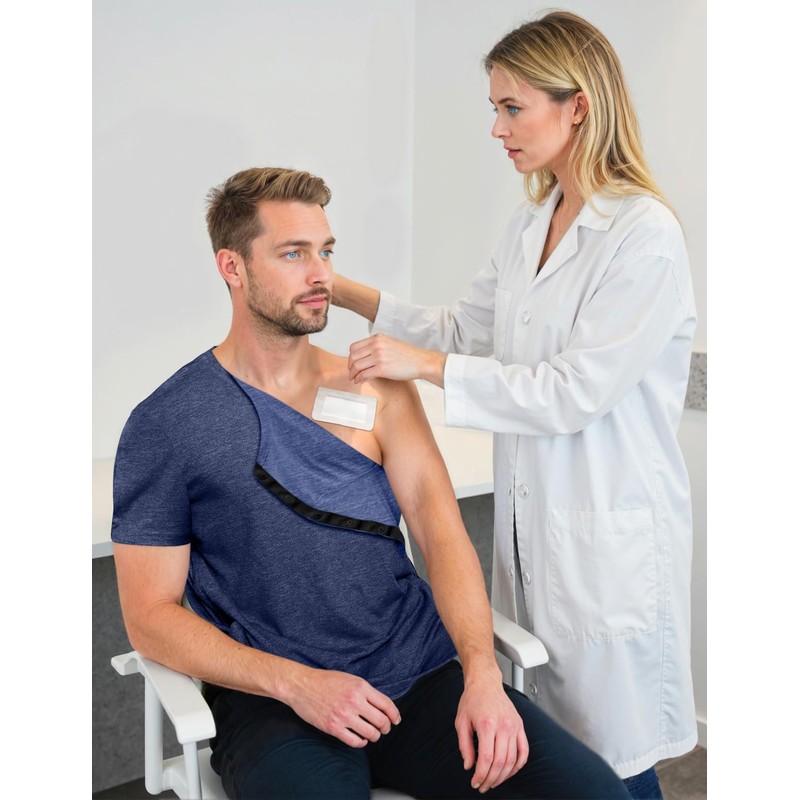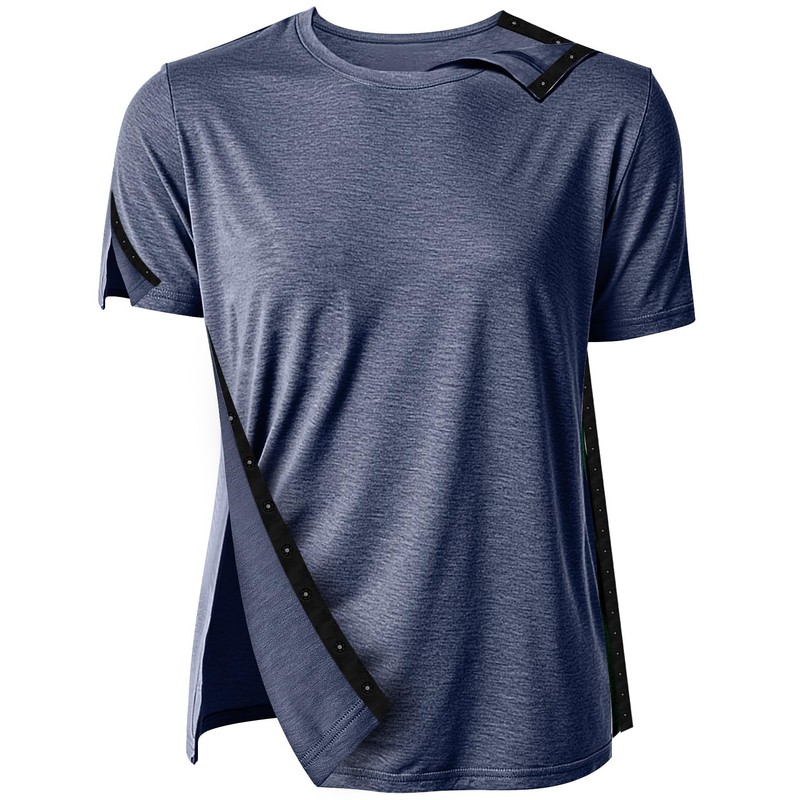 Post Shoulder Surgery Shirts for Men Women Unisex After Rotator Cuff Surgery Shirt Snap Access Recovery Hospital Shirt (US, Alpha, X-Large, Regular, Regular, Dark Blue)