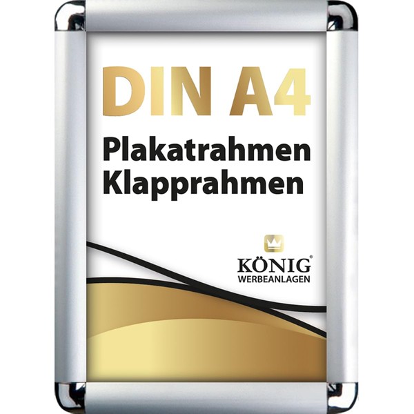 - Poster frame DIN A4, rounded corners, 25 mm aluminium profile, silver, includes anti-reflective protective panel, picture frame, folding frame, removable frame, poster frame frame. Dreifke