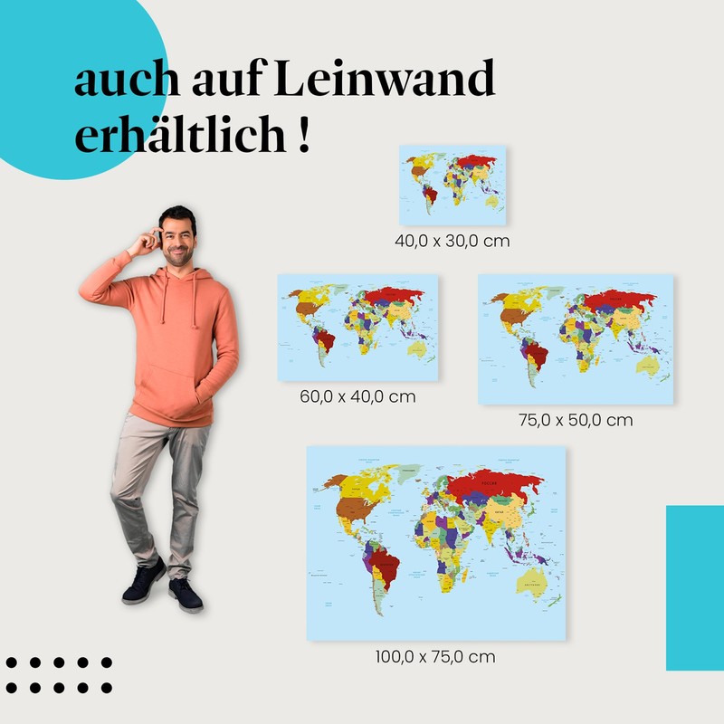 Postereck - 0672 - High Quality World Map Poster | in Russian Writing World Map Wall for Hanging | Classroom School World Map Wall | Map World XXL | Poster - 3:2-30.0 cm x 20.0 cm