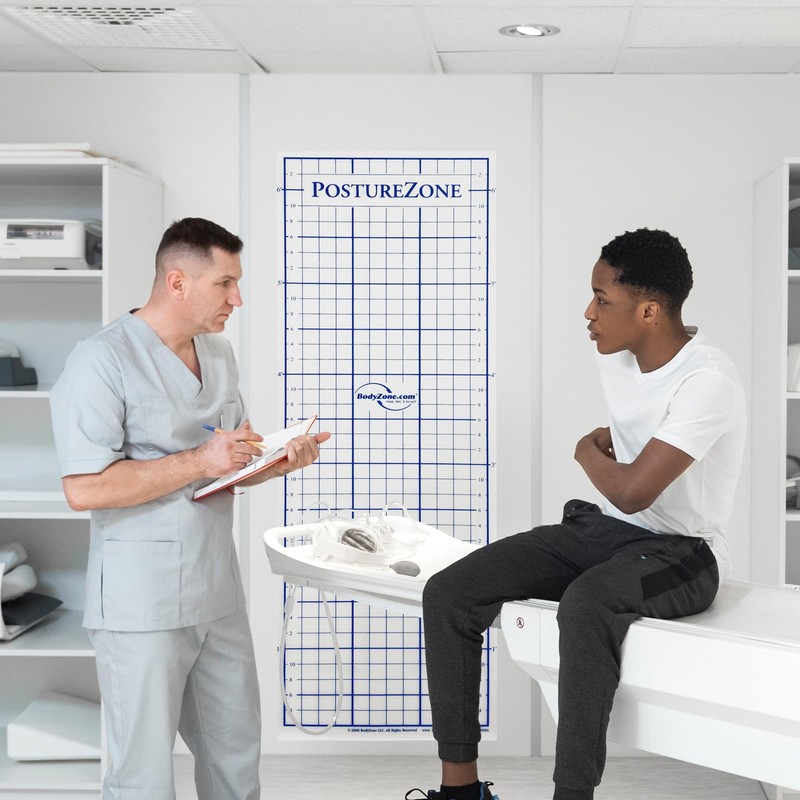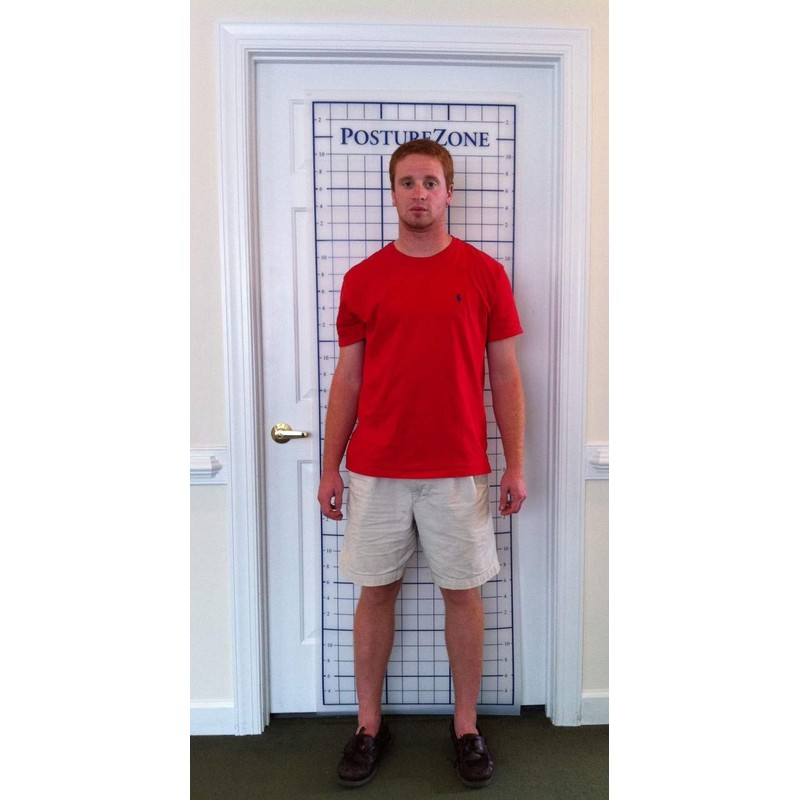 The door mount grid measures approx. 24” x 78”. Text and lines are printed in blue. The material is a durable translucent white flexible plastic material. Visually assess posture, and document your findings by taking a quick digital photograph. The grid may be cleaned easily with a soft sponge and dish soap, so it always looks good! Great for the office as it takes zero floor space! You can also teach Wall Protocol StrongPosture Exercises against it – and wipe clean. The space saver door mount grid was created for tight areas, and offices with limited wall space. A picture is worth a thousand words, and posture pictures provide compelling visual evidence for patients and clients as well as providing important data for tracking posture changes and choosing appropriate posture exercise rehab protocol. The horizontal and vertical lines make posture deviations easy to identify and explain to patients, plus pre- & post- posture analysis pictures makes it easy to demonstrate increased symmetry and other changes. PostureZone Grids are the number one posture grid on the market and is used by posture professionals; chiropractors, physical therapists, physiotherapists, massage therapists, dentists, personal and fitness trainers, Pilates and yoga instructors, coaches, Alexander Technique and Feldenkrais practitioners, hospitals, researchers, athletic teams, clinics, colleges and universities internationally.
