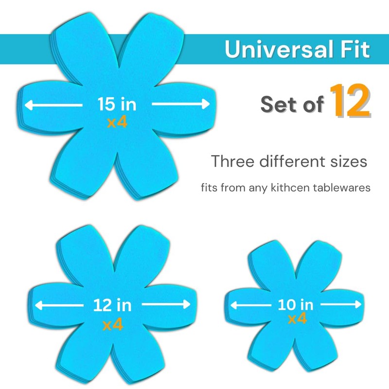 Pot and Pan Protectors Set of 12 and 3 Different Sizes Separators Pad Pot Dividers Anti-Slip Pad for Stacking and Protecting Cookware Avoid Scratching (10" 12.5" 15") (Turquoise)