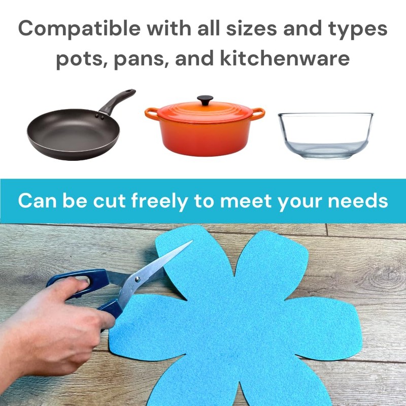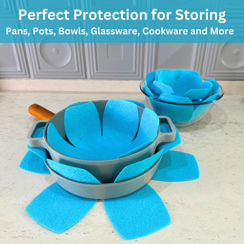 - PERFECT PROTECTION: It offers a perfect solution to prevent your kitchenware, which has the risk of sticking to pots, pans, glass ceramics, from getting scratched. Placing your products inside each other creates a good space in your kitchen. It extends the life of your products.