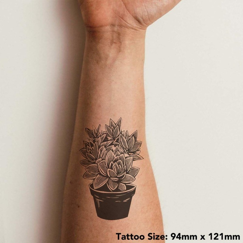 'Pot of Succulents' Temporary Tattoo - Water Resistant, Skin-Safe, Non-Toxic Transfer (TO00082091)