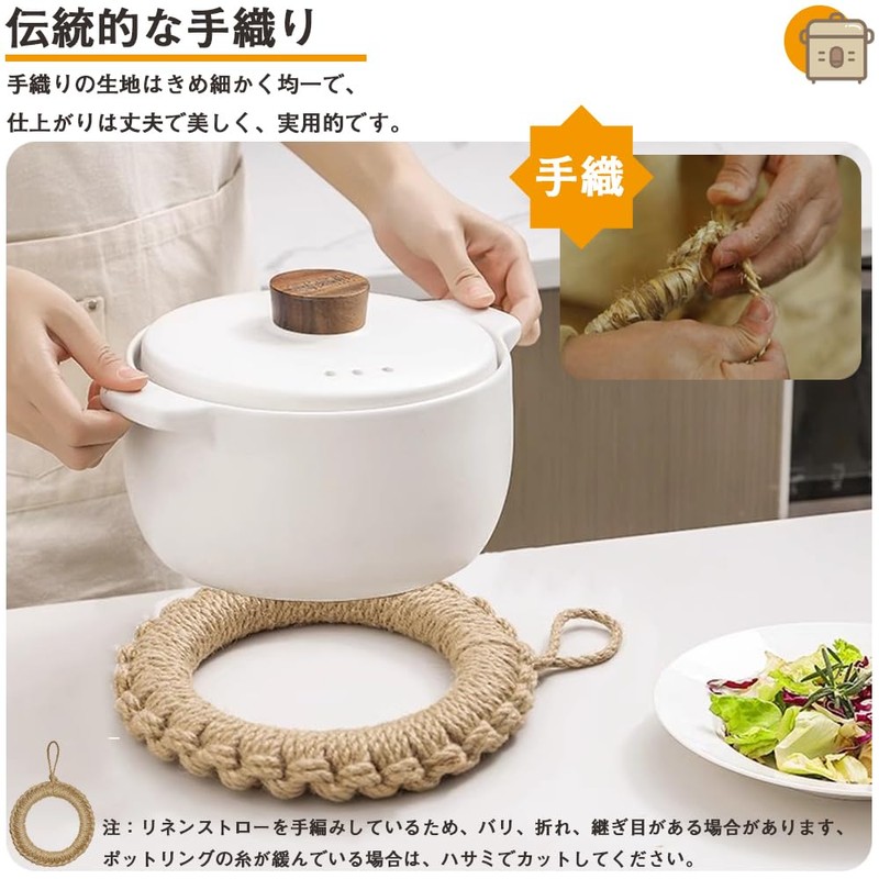 - Set Includes: 1 pot mat set (medium type); Inner diameter approx. 4.7 inches (12 cm); Weight = 6.3 oz (180 g); Thickness = 1.0 inch (2.5 cm); Please do not place it in a high temperature heat source or damp dark environment to avoid damage; As this product is handmade, there may be variations in size and weight and color irregularity