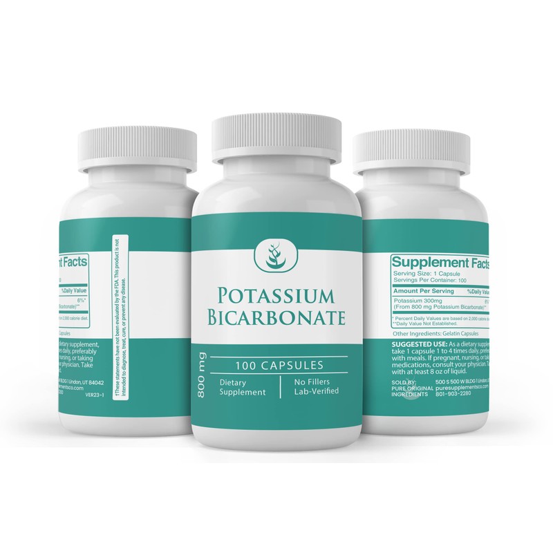 - Pure Original Ingredients Potassium Bicarbonate Capsules are filled with a single ingredient, providing a pure undiluted supplement