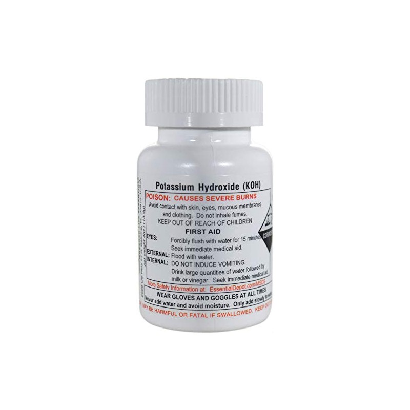 - 4 ozs of Potassium Hydroxide (KOH) per container shipped in an HDPE container with a resealable child proof cap.