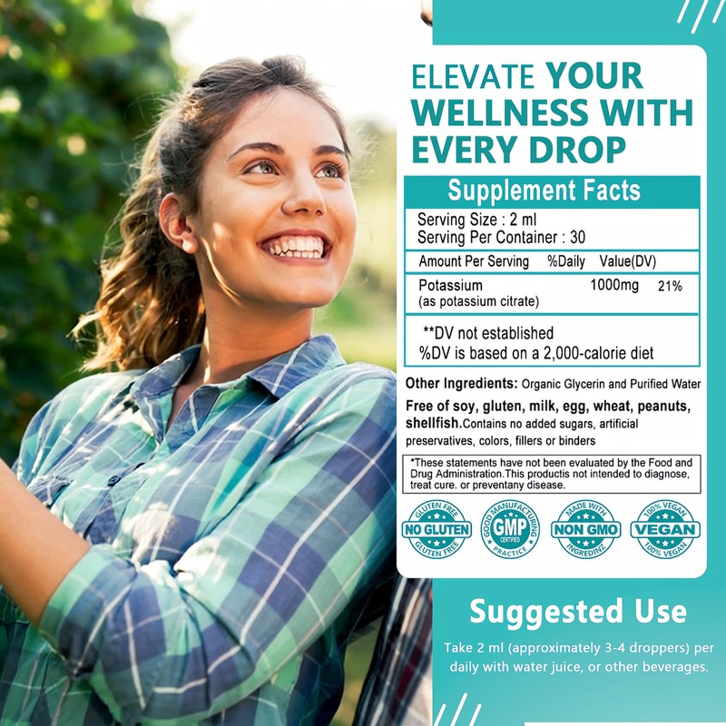 - DAILY MINERAL SUPPORT FOR WELLNESS*:Our Potassium Citrate Drops offer a simple and effective way to supplement your daily potassium intake—supporting muscle activity, hydration, and cellular function.* With 1000mg per serving in a fast-absorbing liquid format, it’s a convenient choice for those who have difficulty swallowing pills. Free from artificial ingredients, this clean formula fits seamlessly into your daily wellness routine.*