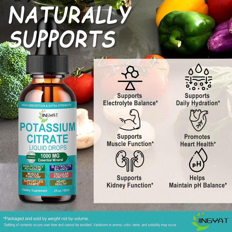- THE JINGYAT DIFFERENCE: At JINGYAT, we are committed to delivering high-quality, transparent formulas made with clean, plant-based ingredients. Our Potassium Citrate Drops are crafted using a carefully selected source of potassium and other supportive nutrients.* Free from artificial fillers, preservatives, and synthetic additives, our formula reflects our dedication to simple, effective wellness support inspired by nature.*