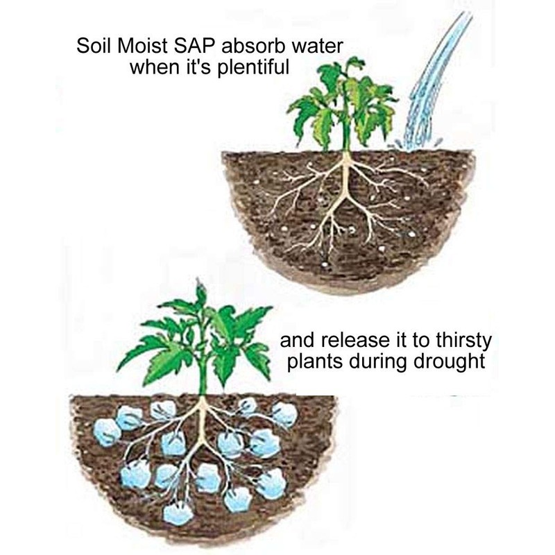 - Soil Moist SAP Water storing crystals granules help prevent over and under watering.