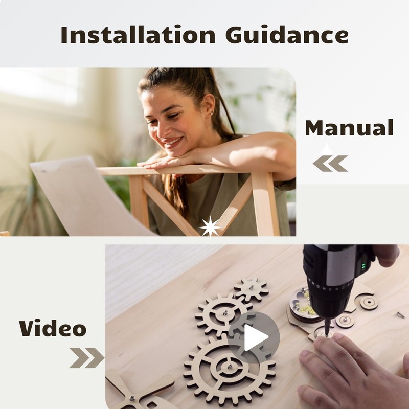 - EASY ASSEMBLY Our wooden series guarantees smooth installation. Screws are included, so your Busy Board is ready to use in just a few steps. In addition, a practical installation video is available to help you with easy assembly.