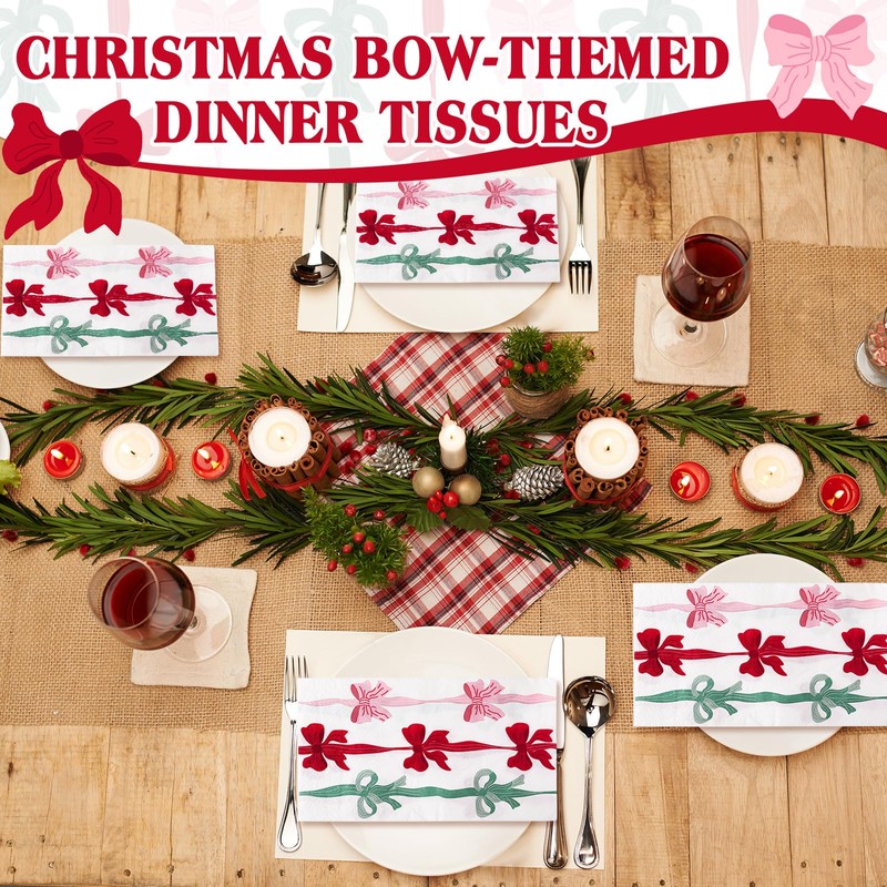 - Abundant Quantity for All Occasions: you'll receive 100 pieces of Christmas bow themed 3 ply disposable dinner napkins; This ample supply of Xmas bow decorated paper towels is more than enough to meet your daily needs and frequent replacements for family gatherings in the kitchen, bathroom, or even Christmas parties