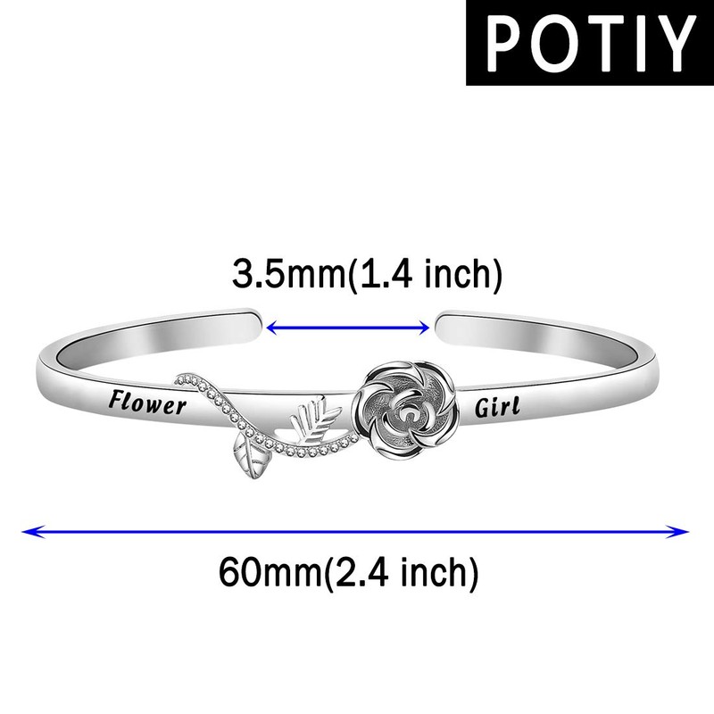 POTIY Flower Girl Bracelet Flower Girl Jewelry Wedding Party Gift Charm Bangle Bracelet (Silver)
