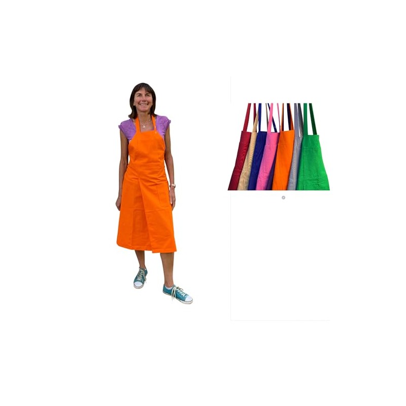 Pottery Apron Split Leg with an Adjustable neck strap and 2 pockets 8 Cotton Colours (Orange)