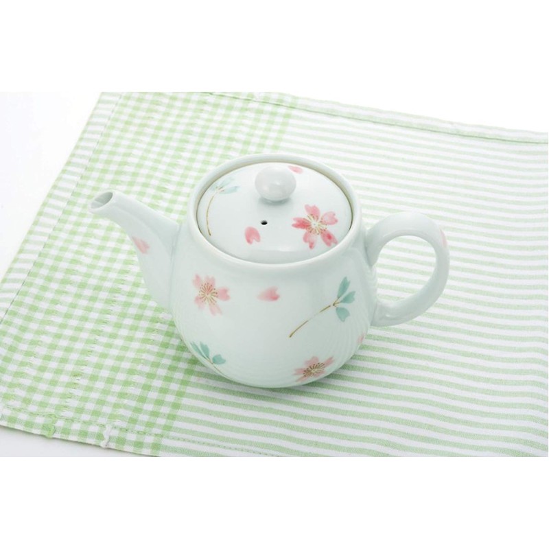 Pottery Teapot, White/Floral, 16.9 fl oz (500 ml), Arita Ware, Cherry Blossom Scattered Pot (with Basket Net)