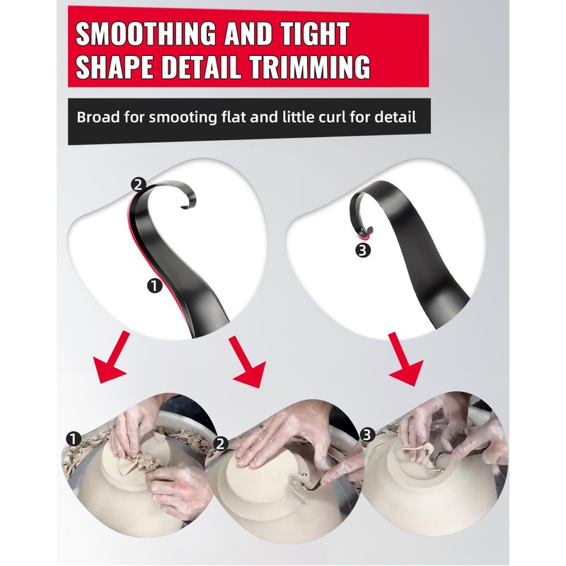 • Smoothing and Detailed Trimming: The other end of this pottery trimming tool features a broad edge for effortlessly smoothing flat surfaces, while its narrow edge allows for intricate detail trimming