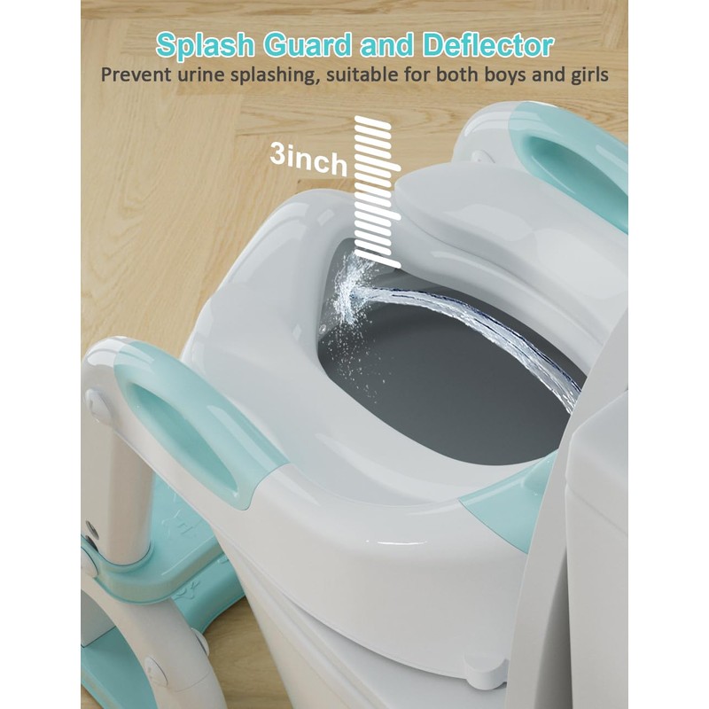 - ❣️[COMFORTABLE SEAT & SPLASH-PROOF]: KOYOSINIER baby potty chair equipped with a waterproof and removable PVC seat cushion, which has good resilience and soft touch, protecting children's delicate skin, warm and comfortable in winter, clean and refreshing in summer. The toddler toilet seat with steps also has a raised splash-guard design in the front of the seat, with deepened arc recesses to effectively prevents spills and is also suitable for boys and girls!