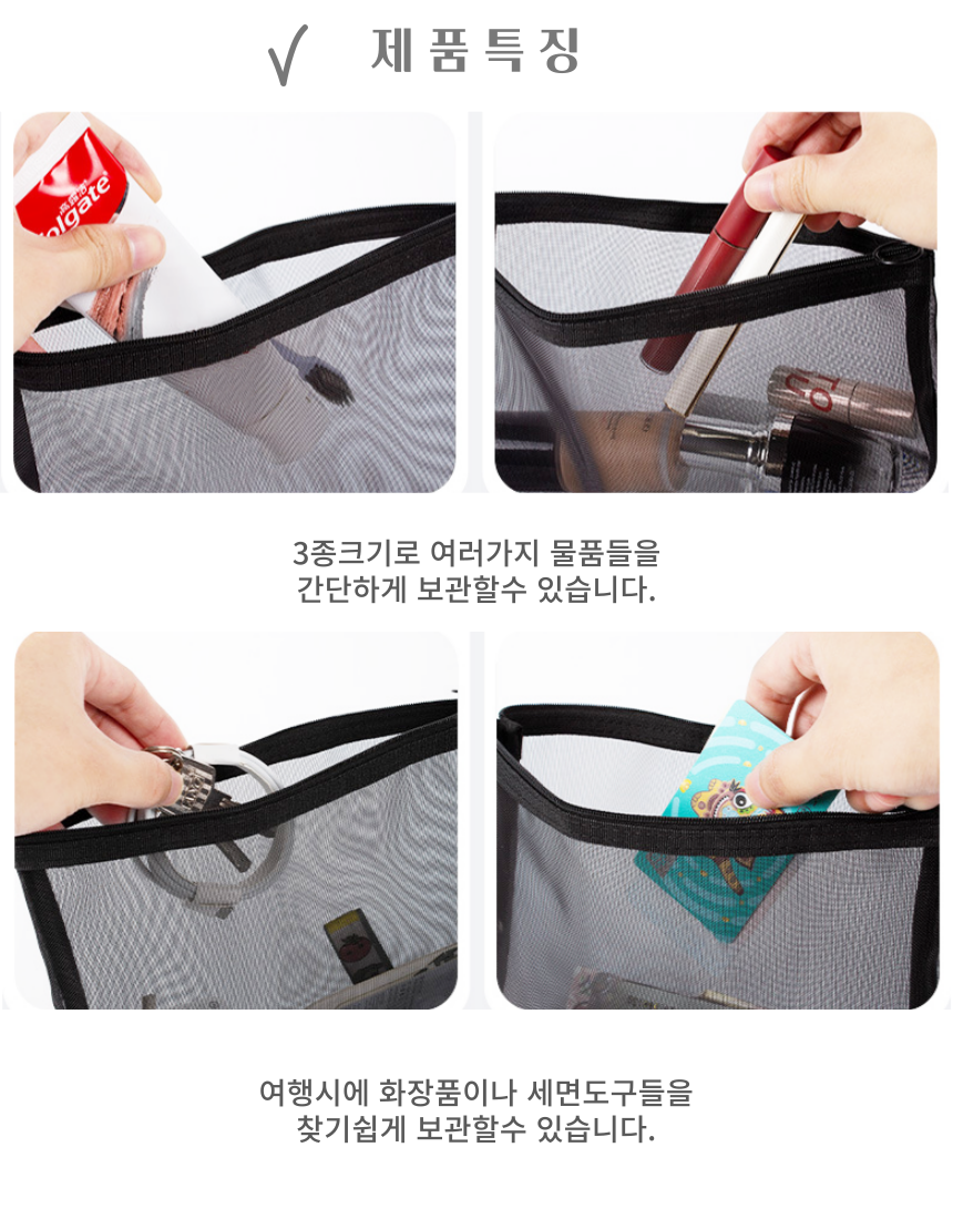 Pouch Multipurpose Mesh Pouch 3-piece set gray 3ea