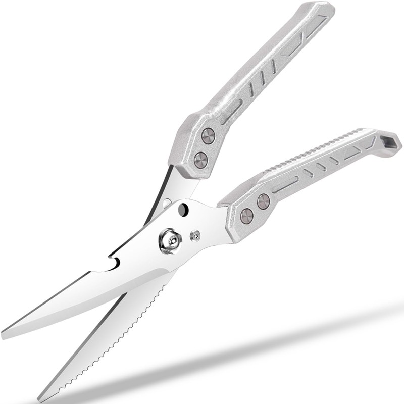 - 【One Is Enough, Kitchen Shears Heavy Duty Scissors All Purpose】Heavy duty 8.8-inch super sharp kitchen scissors. It adopts a thickened high-quality stainless steel design, which is sharper, more durable, and corrosion-resistant. Thicker and more durable than traditional kitchen scissors. The handle is made of aluminum alloy material, which has a longer service life and more comfortable grip. This pair of scissors is perfect for challenging tasks and can be used to cut poultry, turkeys, chicken, raw meat, fish, shrimp, seafood, vegetables, and other routine tasks. Obtain the best cutting effect with minimal effort. Suitable for kitchen, home, car, and outdoor life.