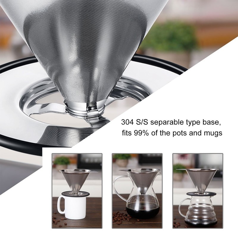- ▶[Premium Quality] -18/8(304) food grade stainless steel coffee dripper ensures the great original taste coffee.High technical etching to make the super fine 0.2mm holes to drip through for a better tasting cup of coffee.