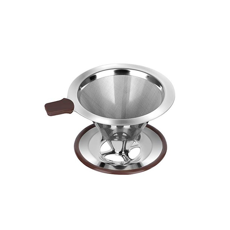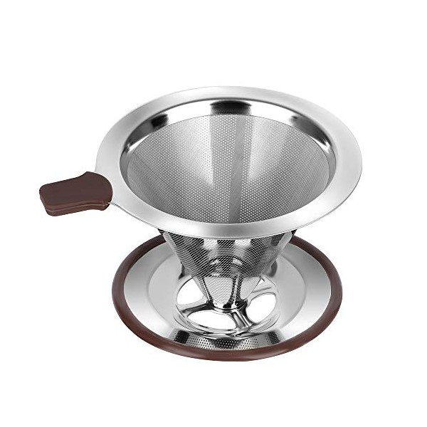 Pour Over Coffee Dripper , RealPero Coffee Filter Stainless Steel Paperless and Reusable , Professional Drip Brew Coffee Cone Strainer , Update Double Micro Mesh Filter with Cup Stand ,1-2 Cup