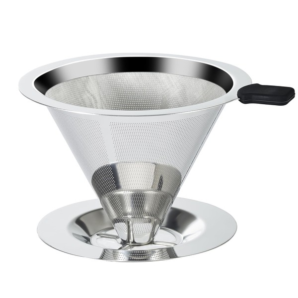 Pour Over Coffee Dripper Slow Drip Paperless Coffee Filter, Double Mesh Stainless Steel Pour Over Coffee Maker for Single Cup Brew Cone Filter, Integrated Cone Coffee Drip Fine Mesh Strainer(3-4 Cup)