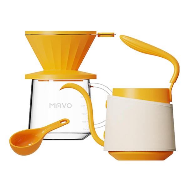 Pour Over Coffee Maker Set, Pour Over Kettle, Coffee Dripper, Glass Coffee Server with Scale, Stainless Steel Filter (Orange)