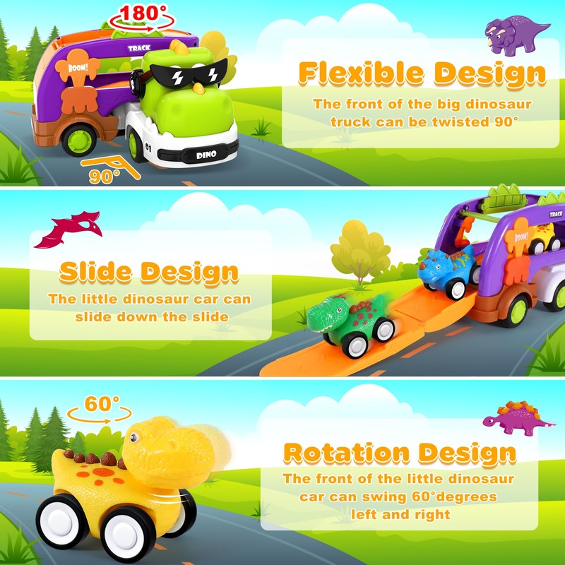 • Vivid design: the dinosaur truck has a realistic dinosaur image design, rounded lines and bright colours, so children fall in love at first sight.