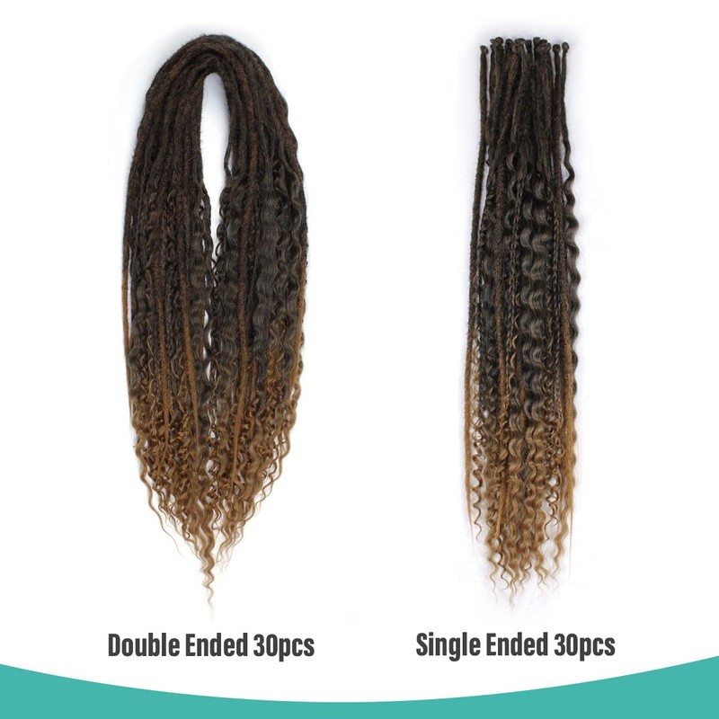 Pouweney 24 Inch 3 In 1 Dreadlock Extensions Sets, 30 Strands Mixed Ombre Brown Synthetic DE Dreads Extensions, 100% Handmade Soft Double Ended Curly Boho Wavy Dreads for Girls
