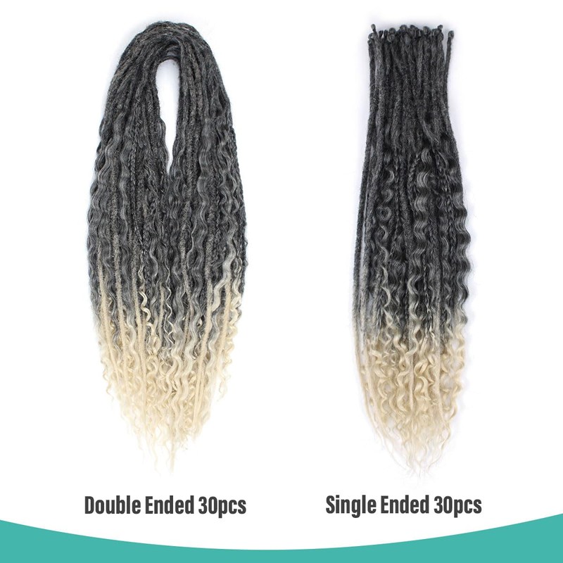 Pouweney 24 Inch 30 Strands DE Dreadlock Extensions Sets, 3 In 1 Mixed Gray to Blonde Synthetic Double Ended Dreads Extensions, 100% Handmade Soft DE Curly Boho Wavy Dreads for Girls
