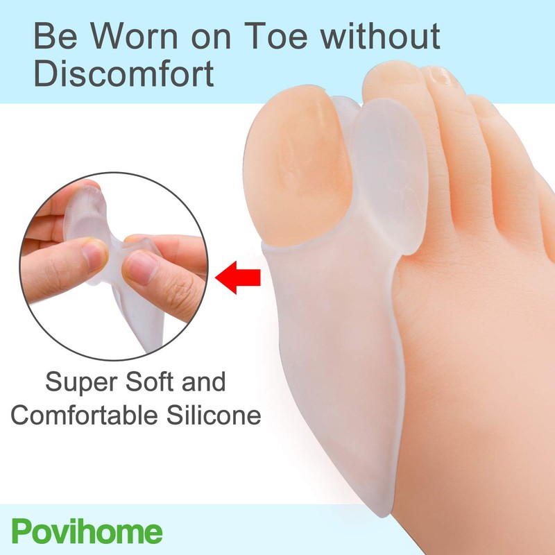 - Large soft gel toe separators separate the first and second toes by 1/2". They're perfect for cushioning and aligning big toe, and controlling bunion pain and relief the pain in big toe joint. The temporary solutions for bunion pain relief and great for use after bunion pain relief.