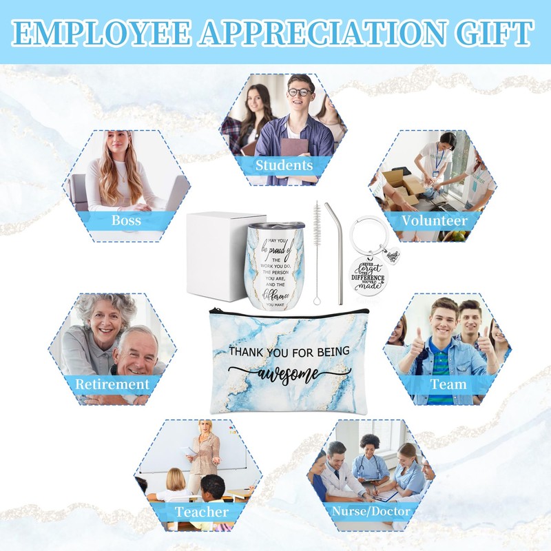 Povxlum Employee Appreciation Gift Sets Thank You for Being Awesome 12oz Stainless Steel Tumbler Keychain Makeup Bag for Team Coworker Staff (Blue)