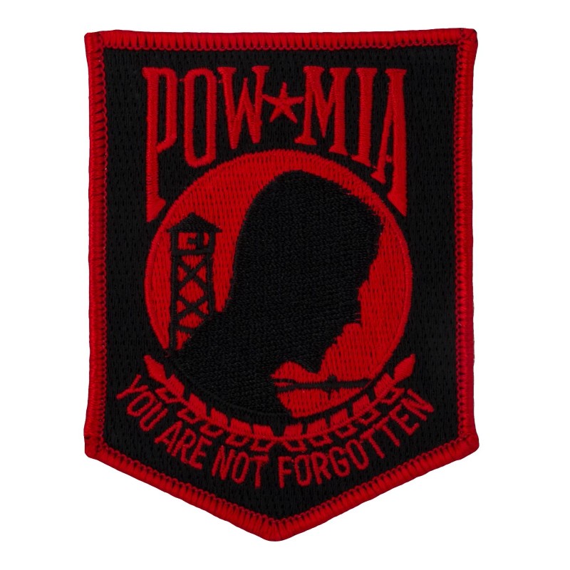 POW - MIA Shield Patch Red & Black (296) 3" x 4" Embroidered Patch 21841