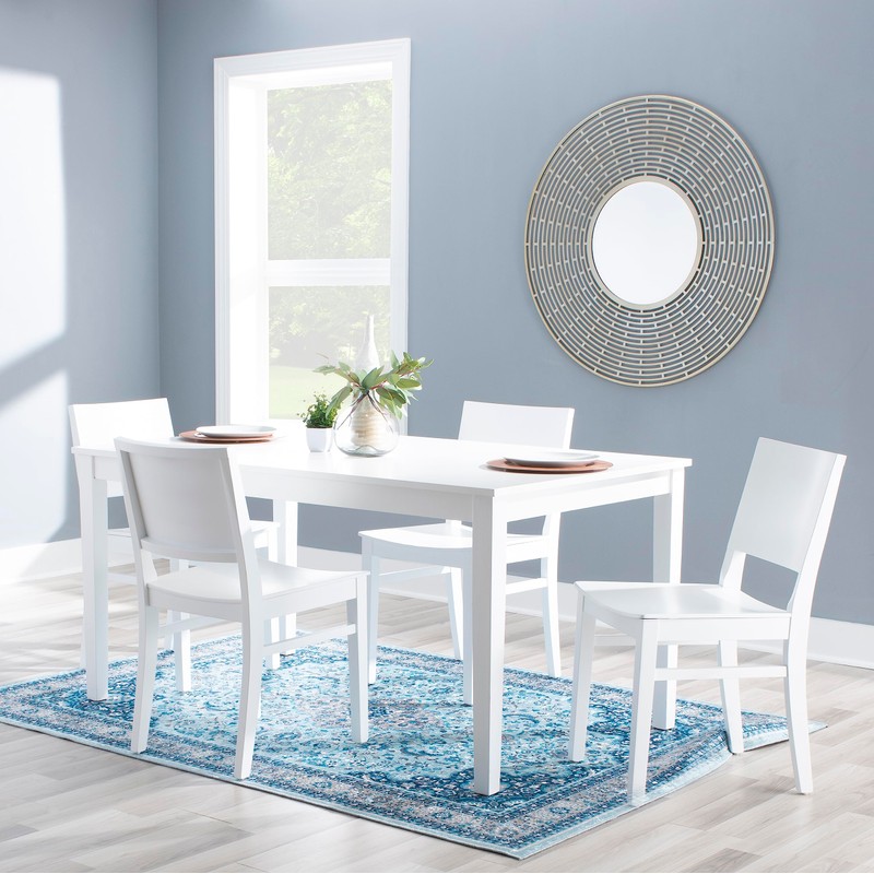 - Covered in a lustrous white finish that pairs seamlessly with a variety of décor.