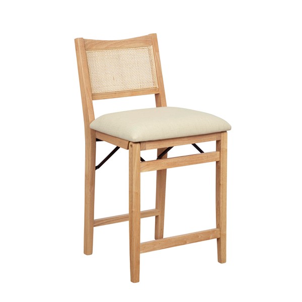 Powell Kasi Natural Wooden Folding Counter Stool with Padded Linen Seat