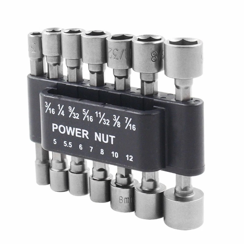 Power 14Pcs Power Nuts Driver Drill Bit Set Metric Socket Wrench 1/4'' Driver Hex Keys