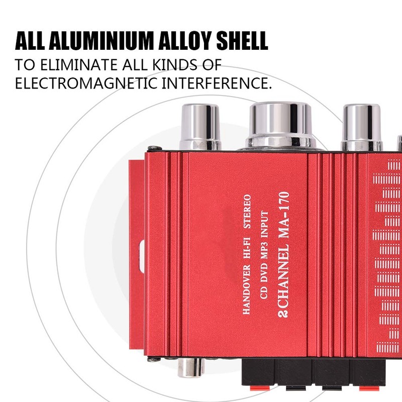 Power Amplifier, Bass Small Size Aluminium Alloy Shell Digital Amplifier, 12V DC 2 Channel HiFi for Home Car Speaker