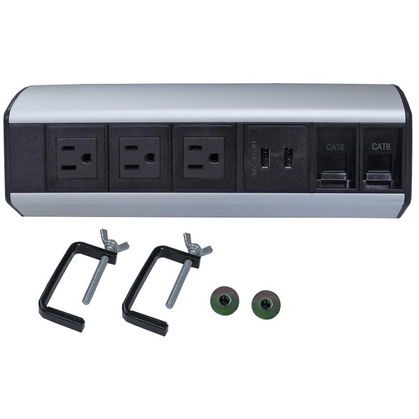 - Features 3 Power outlets, 2 Ethernet CAT6 RJ45 Data ports and 2 USB Charging ports up to 2.1 Amp Total