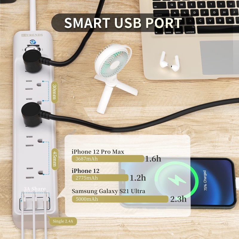 • ▶Surge Protection: 6 outlets 3 USB ports power strip with 1080-joule surge-protection for computer, TV and other household, office electrical appliances from voltage fluctuations, surges and spikes.
