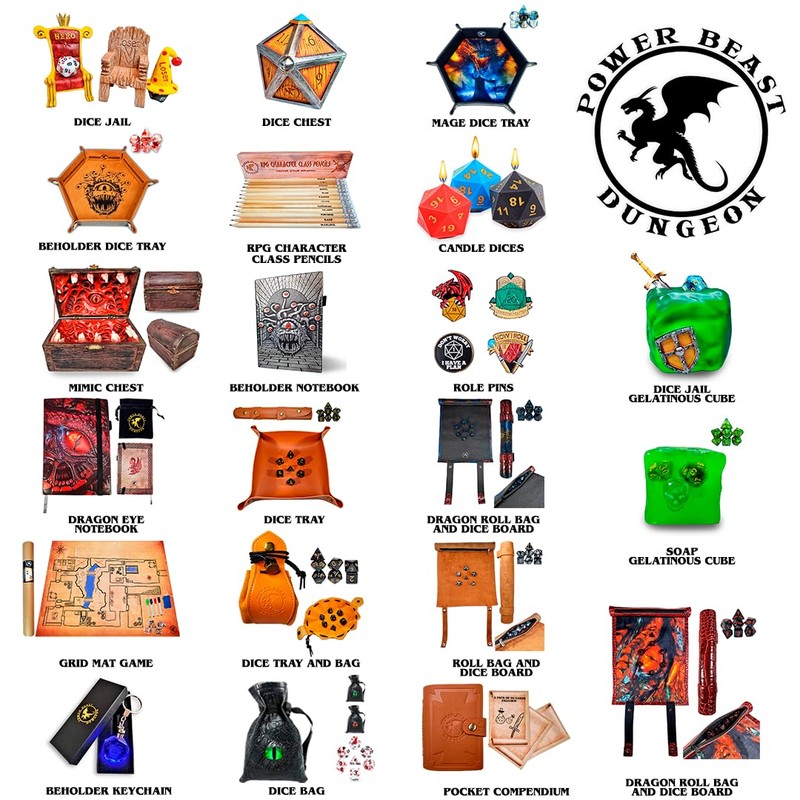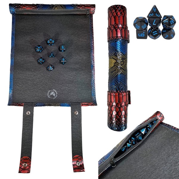 - 🐉 POWER BEAST DUNGEON DICE BAG & TRAY + 7 POLYHEDRIC DICE PACK: All in one! Includes a rolling dice bag and tray like a Wizard's Scroll, plus 7 Polyhedric dice. You can take your rolled dice tray, with your dice in it, anywhere you want!